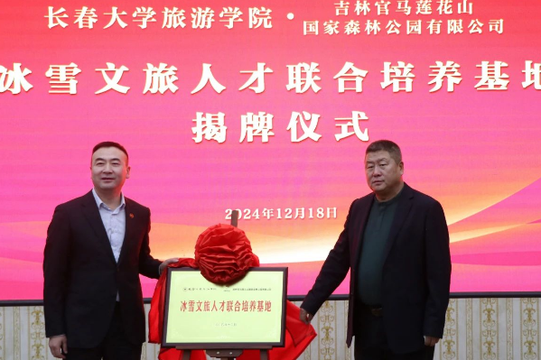 近日,长春大学旅游学院与吉林官马莲花山国家森林公园有限公司举行冰雪文旅人才联合培养基地签约揭牌仪式,旨在进一步深化校企合作,助力产教融合,提升育人质量。